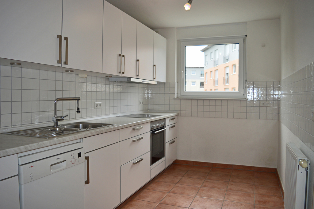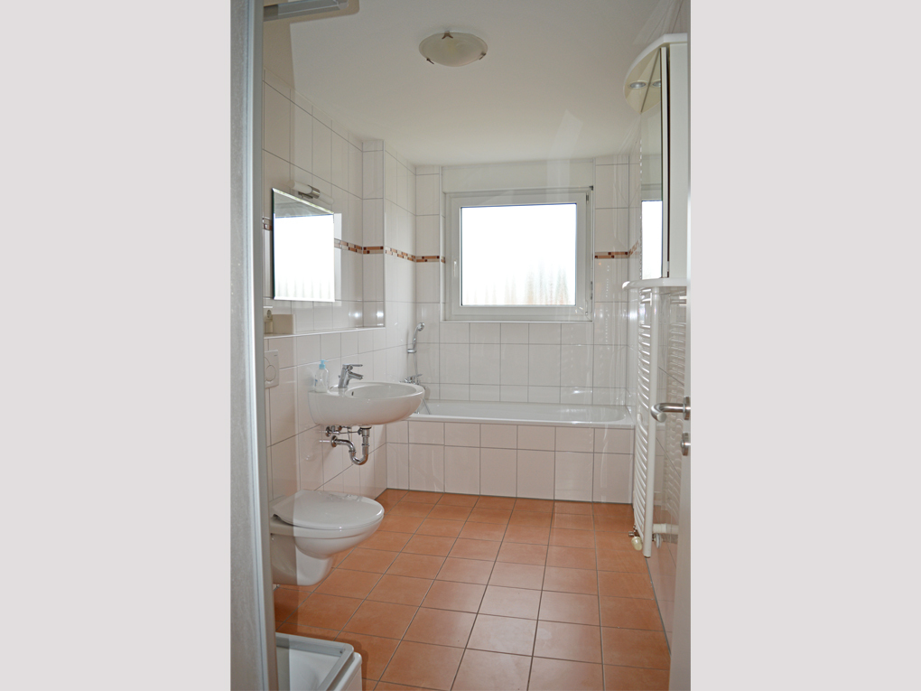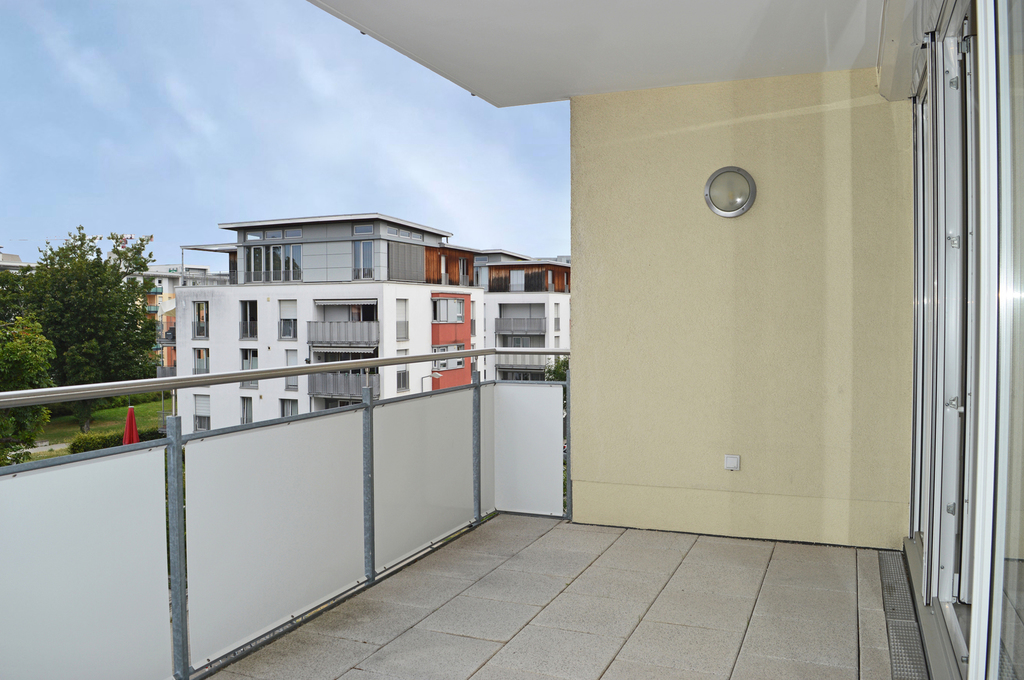 Die mit hochwertigem Laminatboden und geschmackvoll gestalteten Fliesen ausgestattete Wohnung verfügt über einen großzügigen Wohn-/Essbereich, der Ihnen sowohl einen Ostbalkon als auch einen Westbalkon bietet, auf welchen Sie nach Belieben die Sonne oder den kühlen Schatten genießen können. Die Küche - inklusive Einbauküche (ohne Kühlschrank) - schließt sich an den Essbereich an. Platz für Ihre Waschmaschine und einen Wäschetrockner ist ebenfalls in der Küche gegeben. Zwei helle Schlafzimmer mit großen Fensterflächen, ein gepflegtes Tageslichtbad mit Badewanne, Dusche, Waschbecken, WC und Handtuchheizkörper sowie ein separates Gäste-WC ergänzen das Raumangebot. Ein Kellerabstellraum für Dinge, die nicht täglich in Gebrauch sind, steht Ihnen im Untergeschoss zur Verfügung. Ein Tiefgaragenstellplatz gehört zur Wohnung und ist in der mtl. Kaltmiete mit € 50,-- berücksichtigt. Der künftige Mieter streicht die Wohnung bei Einzug nach Bedarf auf eigene Kosten.