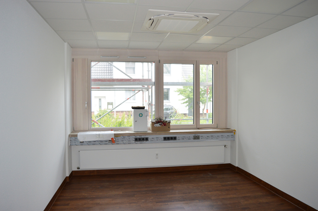 In einem 1980 erbauten, überwiegend gewerblich genutzten Gebäude mit insgsamt sechs Einheiten befindet sich im Erdgeschoss diese zur Vermietung stehende Gewerbefläche, die ab sofort zum Erstbezug nach umfassender Modernisierung bereitsteht. Über diese Modernisierung hinaus werden aktuell auch das Dach des Hauses erneuert und die Fassade gedämmt (18 cm).